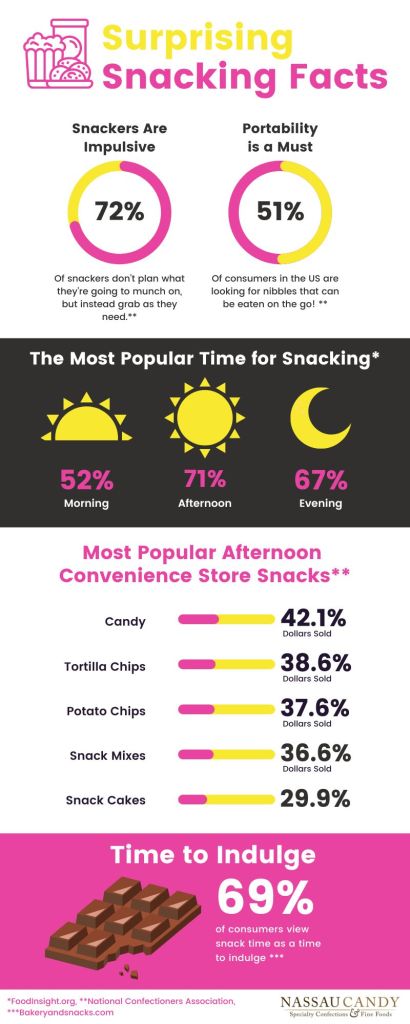 51% of consumers in the US are looking for nibbles that can be eaten while on the go! Whether they’re at home or not! (National Confectioners Association).