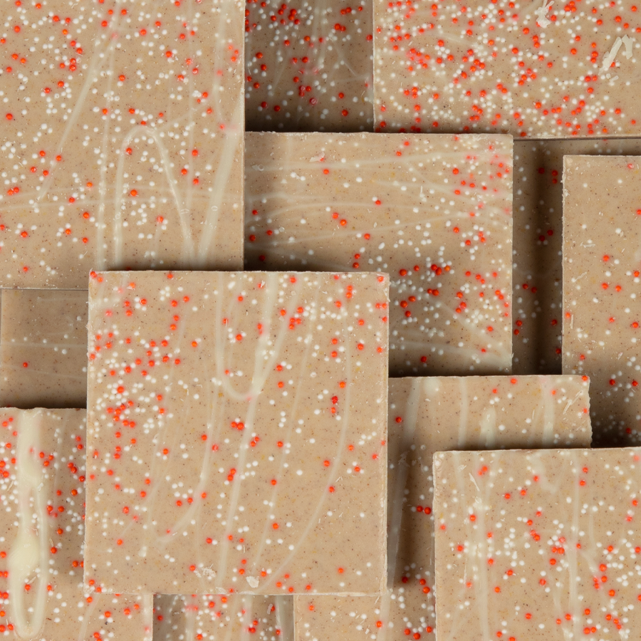 The tin makes Nancy Adams Pumpkin Spice Bar ready for gifting. What’s inside is a true treat. Chocolate and pumpkin spice-flavored bark, topped with white and orange sprinkles and a white frosting drizzle!