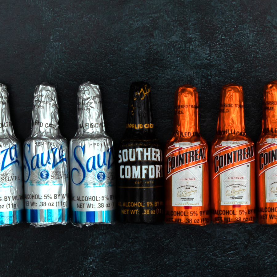 Celebrating solo? Goldkenn has chocolate bars infused with popular spirits like Captain Morgan’s Spiced Rum, Jack Daniels Whiskey, and Cointreau.