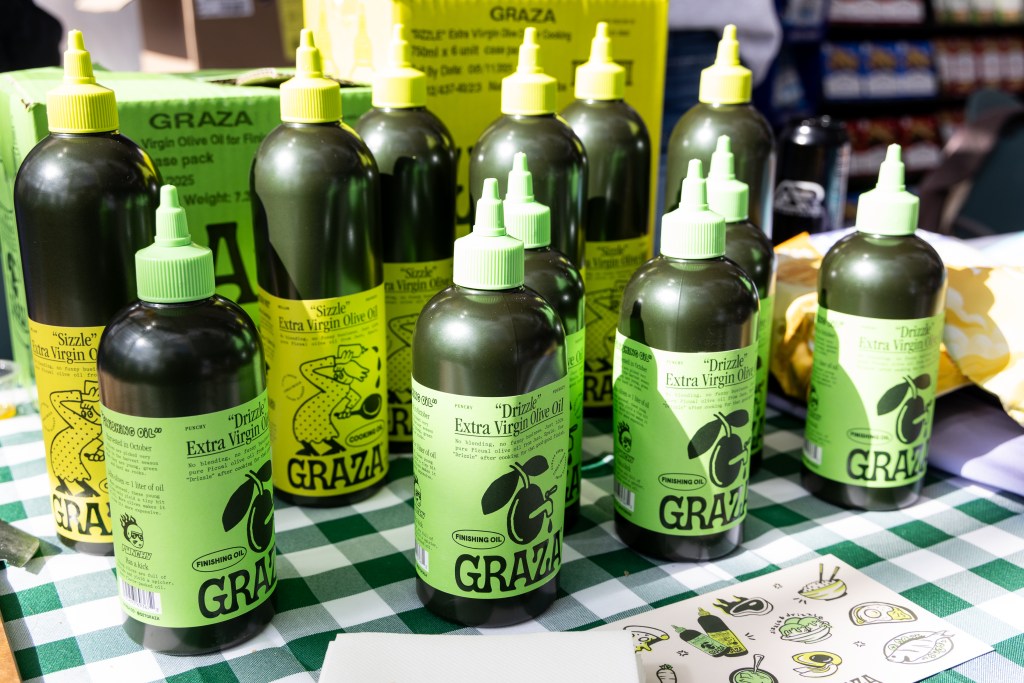 A brand getting a lot of eyes at the show was Graza and its line of olive oils.