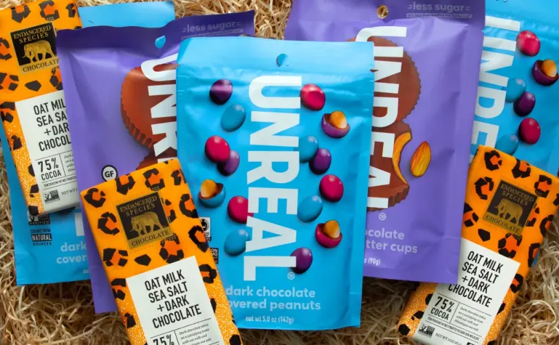 A brand that pushes the plant-based envelope is Endangered Species. Bars like Oat Milk Dark Chocolate Coconut & Almonds bursting with exotic, tropical flavors, and texture-rich Oat Milk Dark Chocolate and Rice Crisp offer a crisp, new way to enjoy.