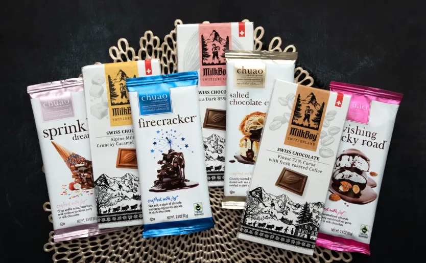 Nothing says “party” like fireworks, so a bar like Chuao Dark Chocolate Firecracker, a blend of salt and smoky chipotle with popping candy, ignites a spark of excitement. Celebrations are always better with decorations, so a chocolate bar that offers a pop of color like Chuao Sprinkle Dreams — milk chocolate filled with rainbow sprinkles, crispy waffle cone pieces and hazelnuts — is like a party in a box.