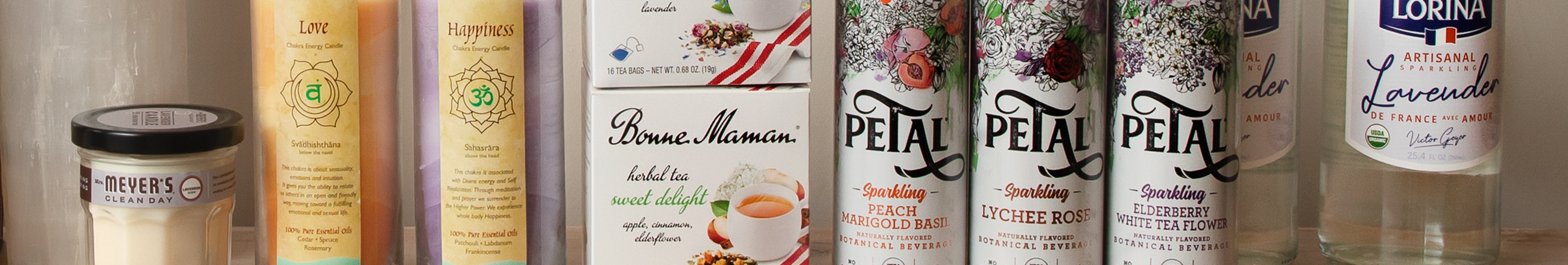 Forget flowers. Shower mom in floral flavors and scents. Sparkling beverages, herbal teas, and soy candles - our floral selection is sure to grow sales.